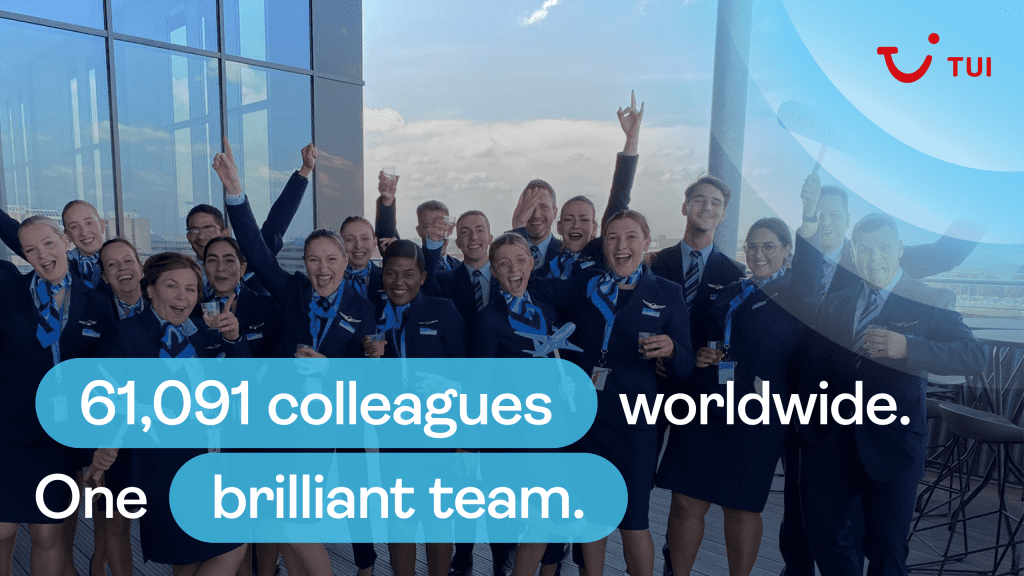 We’re TUI, a leading global travel and leisure experience company counting 1200 travel agencies, around 130 planes, over 400 hotels, 16 cruise liners, various digital platforms for leisure activities, and over 60 000 brilliant colleagues worldwide.